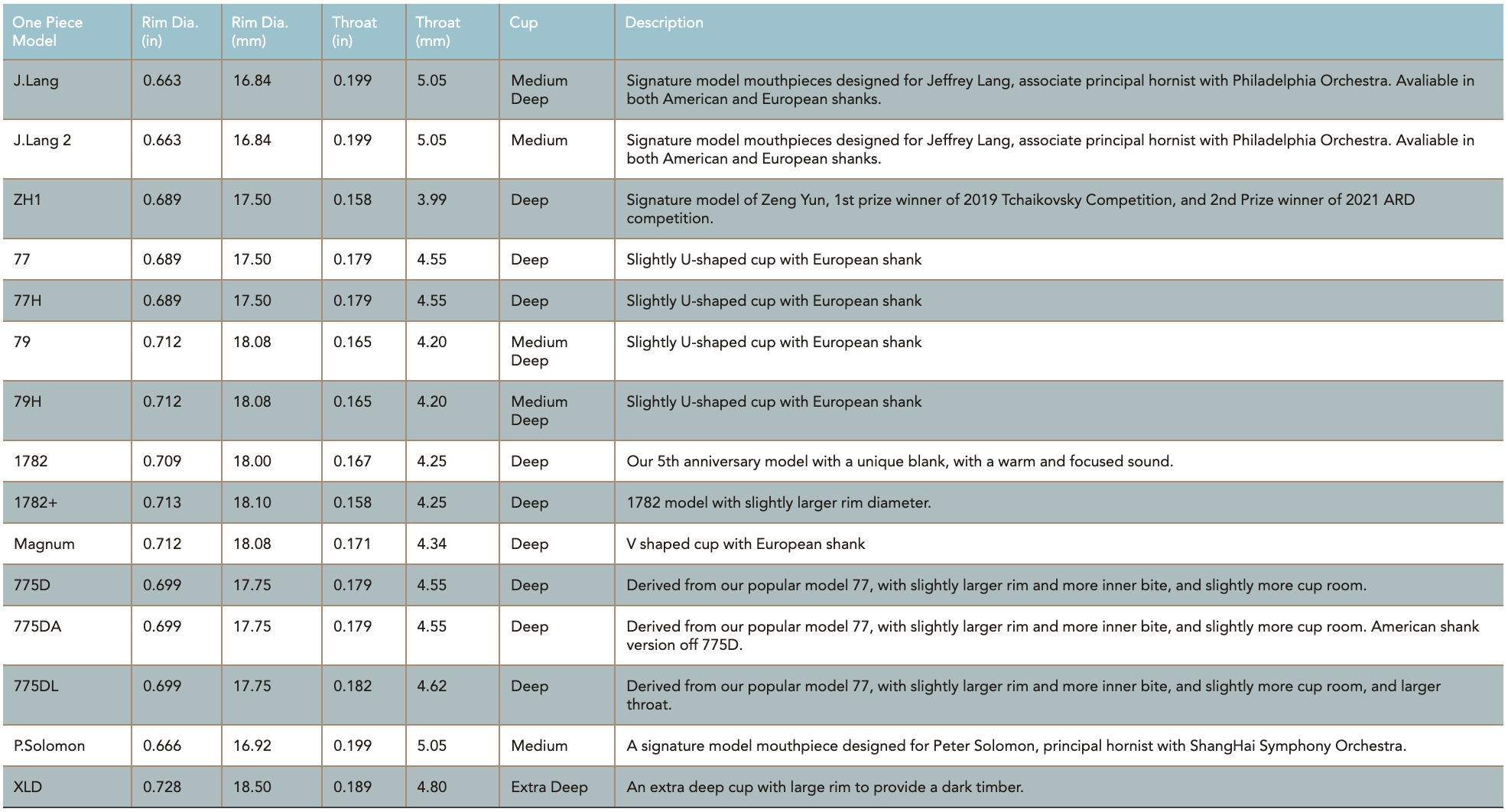 產品被芝加哥交響樂團、紐約愛樂樂團、費城交響樂團等多個世界頂級樂團的成員日常使用,是全球專業和非專業銅管樂手的信賴之選。